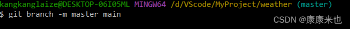 git branch -m master main 将本地文件的master分支名改成main。