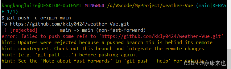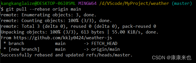 git pull --rebase origin main 拉取仓库main分支中的文件。