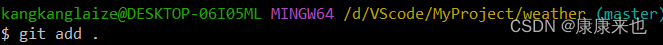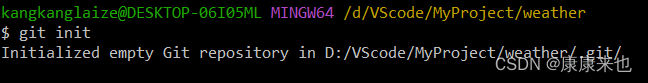 2、 在weather文件夹内右击git bash here打开git。