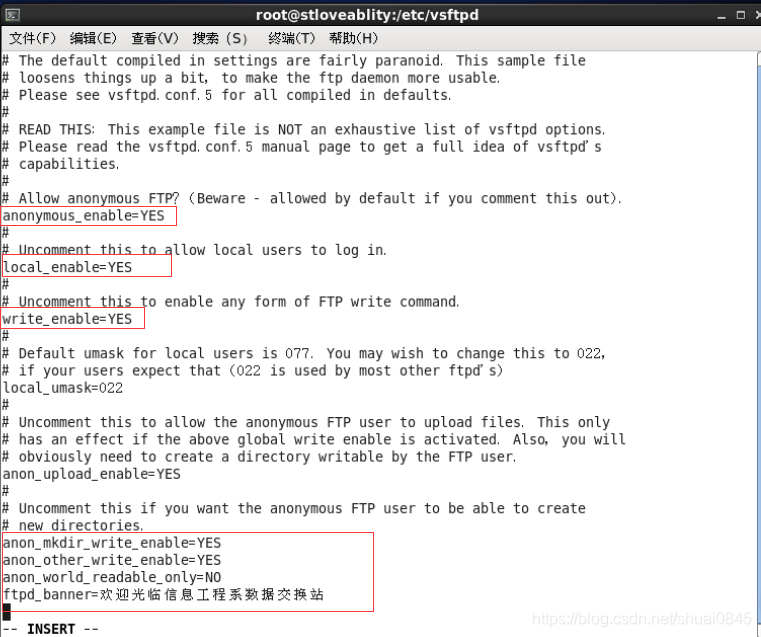 - 修改主配置文件vi /etc/vsftpd/vsftpd.conf: