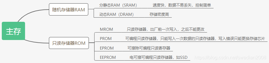 - 随机存储器:任何存储单元的内容都能被随机存取,且存取时间和存储单元的物理位置无关。