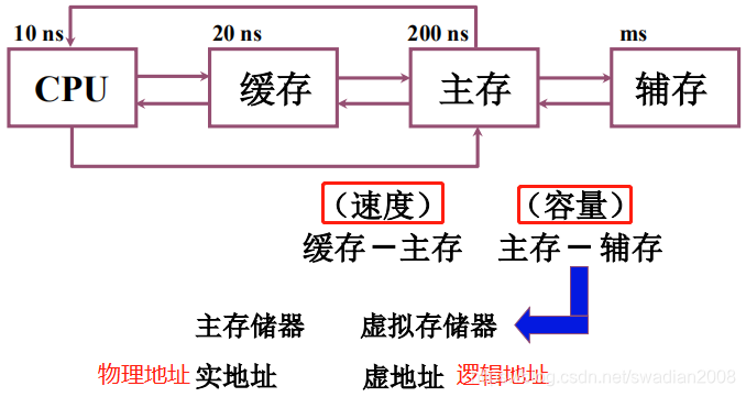 (1)cpu只能和主存,cache进行数据交互,而不能直接获得辅存的数据
