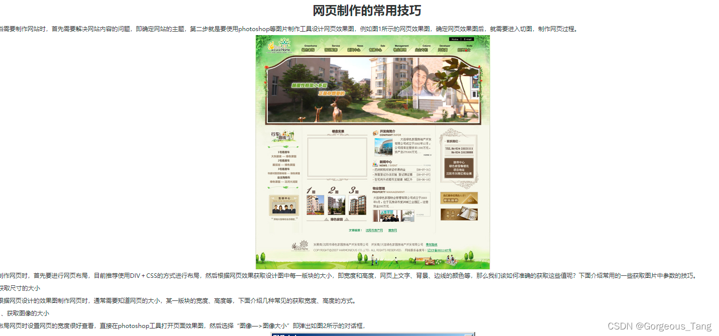 <!DOCTYPE html PUBLIC "-//W3C//DTD XHTML 1.0 Transitional//EN" "http://www.w3.org/TR/xhtml1/DTD/xhtml1-transitional.dtd"> <html xmlns="http://www.w3.org/1999/xhtml"> <head> <meta http-equiv="Content-Type" content="text/html; charset=gb2312" /> <title>网页制作的常用技巧</title> <link href="css/global.css" type="text/css" rel="stylesheet" /> <link href="css/skill.css" type="text/css" rel="stylesheet" /> </head> <body> <div class="center"> <div class="title">网页制作的常用技巧</div> <div class="indent"> 当需要制作网站时,首先需要解决网站内容的问题,即确定网站的主题,第二步就是要使用photoshop等图片制作工具设计网页效果图,例如图1所示的网页效果图,确定网页效果图后,就需要进入切图,制作网页过程。 <div class="img_center"><img src="images/skill_1.jpg" alt="网页效果图"/></div> 制作网页时,首先要进行网页布局,目前推荐使用DIV+CSS的方式进行布局,然后根据网页效果获取设计图中每一版块的大小,即宽度和高度,网页上文字、背景、边线的颜色等,那么我们该如何准确的获取这些值呢?下面介绍常用的一些获取图片中参数的技巧。 </div> <div>一、获取尺寸的大小</div> <div class="indent"> 根据网页设计的效果图制作网页时,通常需要知道网页的大小,某一版块的宽度、高度等,下面介绍几种常见的获取宽度、高度的方式。<br /> 1、获取图像的大小<br /> 布局网页时设置网页的宽度很好查看,直接在photoshop工具打开页面效果图,然后选择“图像—>图像大小”即弹出如图2所示的对话框, <div class="img_center"><img src="images/skill_2.jpg" alt="图像大小查看"/><br />图2 photoshop查看图像大小</div> 另外一种方式是在windows下,设置图片的排列方式为“平铺”就可以直接看到每一个图片的大小,也可以把鼠标放到某一个图片上,这时也会弹出一个矩形框提示图像的尺寸、大小等,如图3所示。 <div class="img_center"><img src="images/skill_3.jpg" alt="图像大小查看"/><br />图3 windows下查看图像大小</div> 查看整个图像大小非常容易,那么如果查看一个图像中某一块的内容的大小,该如何查看呢?别着急,也有非常方便的方法来查看。<br /> 2、获取图像局部大小<br /> 在photoshop中,打开一个图像,使用“矩形选框工具”选中某一版块的大小,在“信息”栏下就可以看到选中区域的大小,如图4所示。如果需要非常精确的局部图像大小,那就要放大图像至最大,然后再使用“矩形选框工具”选中某一区域,然后在“信息”栏下查看先中区域的大小。 <div class="img_center"><img src="images/skill_4.jpg" alt="图像大小查看"/><br />图4 选中区域的大小</div> <p>另一种是使用Hypersnape工具,按“捕捉区域”的组合键(Ctrl+Shift+R),然后拖动鼠标,将显示局部区域的大小(宽和高)。</p> </div> <div>二、获取颜色值的方法</div> <div class="indent"> 1、在dreamweaver中获取颜色值<br /> 使用windows自带的颜色选择器,选取颜色值,但是这种方式获取的颜色值可能与网页设计效果图中的颜色值不完全一致,当对颜色的要求不很精确时,在编写CSS样式时,可以使用这种方式获取颜色值,如图5所示。 <div class="img_center"><img src="images/skill_5.jpg" alt="图像大小查看"/><br />图5 查看颜色值</div> 如果需要设置的颜色值更精确,在图5中单击图标<img src="images/skill_7.jpg" />,弹出如图6所示的颜色选择器,选择更精确的颜色。 <div class="img_center"><img src="images/skill_6.jpg" alt="图像大小查看"/><br />图6 选择颜色</div> 2、使用photoshop获取颜色值<br /> 在photoshop中可以获取与网页设计效果图完全一致的精确的颜色值,在photoshop中打开效果图,选择“吸管工具”,然后在图片适当位置吸取颜色值,如图7所示。 <div class="img_center"><img src="images/skill_8.jpg" alt="图像大小查看"/><br />图7 吸取颜色</div> 然后单击“设置前景色”,弹出如图8所示拾色器,就获取了精确的颜色值。 <div class="img_center"><img src="images/skill_9.jpg" alt="图像大小查看"/><br />图8 使用拾色器获取颜色值</div> 以上介绍了网页制作中常用到的获取图像尺寸、获取颜色值的方法,在以后的网页制作中,可以使用上述方法来快速的制作网页。<br /> 对于使用DIV+CSS布局制作网页,可以参考网上学习资料DIV+CSS布局大全(PDF文档),熟练的制作符合要求的精美的页面。 </div> </div> </body> </html>