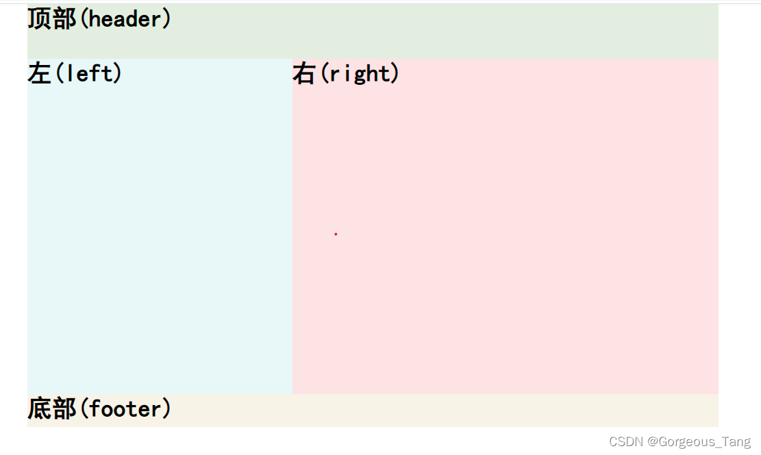 <!DOCTYPE html PUBLIC "-//W3C//DTD XHTML 1.0 Strict//EN" "http://www.w3.org/TR/xhtml1/DTD/xhtml1-strict.dtd"> <html xmlns="http://www.w3.org/1999/xhtml"> <head> <meta http-equiv="Content-Type" content="text/html; charset=gb2312" /> <title>普林斯顿大学</title> <style> body{margin:0px;padding:0px;} div{font:bold 36px 黑体;color:#000;} #container{width:1009px;margin:0px auto;} #header {width:100%;height:80px;background:#e6eedf;} #main{width:100%;height:490px;} .left,.right{float:left;width:387px;height:100%;background:#ebf7f7;} .right{width:622px;background:#f8e4e5;} #footer{clear:both;width:100%;height:48px;background:#f7f3e7;} </style> </head> <body> <div id="container"> <div id="header">顶部(header)</div> <div id="main"> <div class="left"> 左(left) </div> <div class="right">右(right)</div> </div> <div id="footer">底部(footer)</div> </div> <!--container end--> </body> </html>