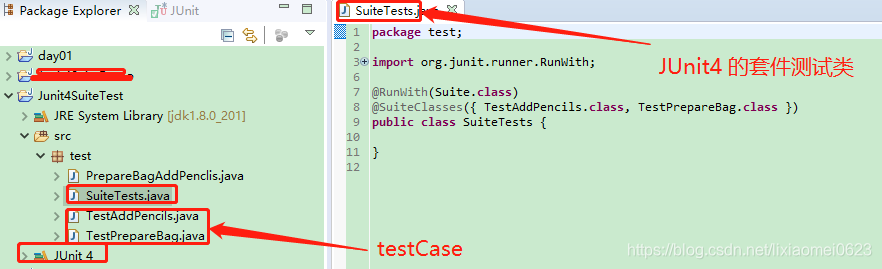 测试套件是一些测试不同类用例,可以使用@RunWith和@Suite注解运行所有东西在一起。如果有很多测试类,想让它们都运行在同一时间,而不是单一地运行每个测试,这是非常有用的。