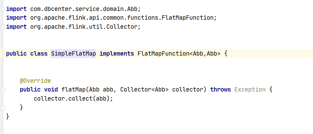 我们新建一个map实现MapFunction接口并重写方法。我们实现的方法很简单就是将数据流中的元素拼接一段字符串。