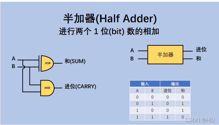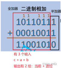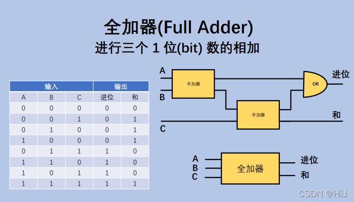 2)拥有了半加器和全加器之后,就可以构建一个8bit位的加法器(8位加法器 = 7*全加器 + 1*半加器)