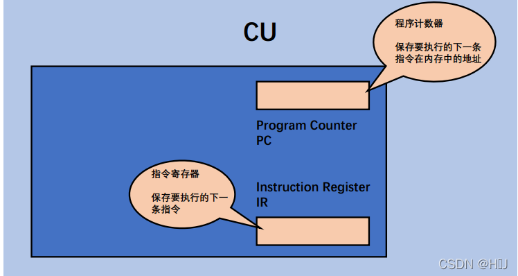 在CU中,还存在两个非常重要的寄存器 PC寄存器和IR寄存器