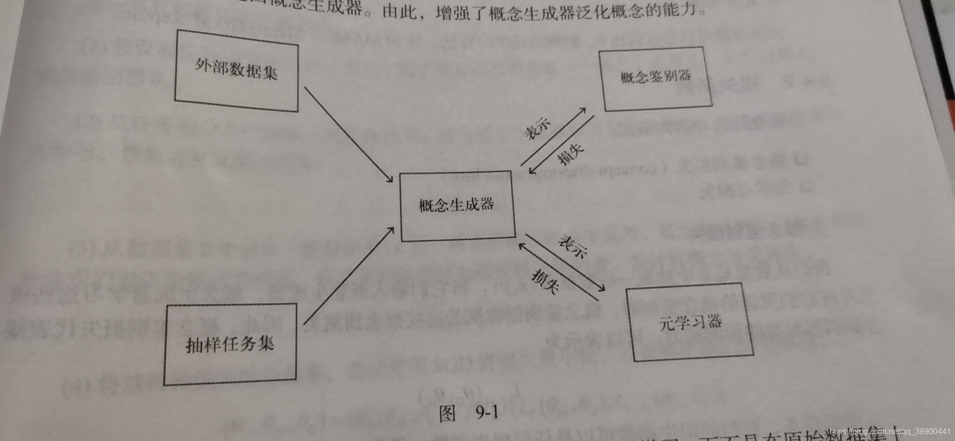 概念空间元学习包括概念生成器、概念鉴别器、元学习器。