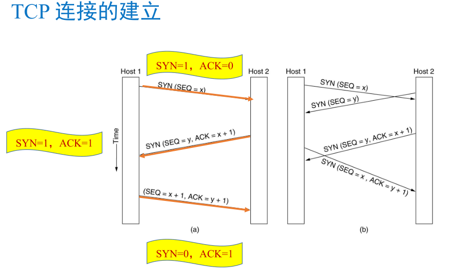 - 三次握手:三次握手建立连接是一个同步的过程,交换初始序列号,保证后续的每一个字节的可靠传输;一次:SYN=1,ACK=0;二次:SYN=1,ACK=1;三次:SYN=0,ACK=1