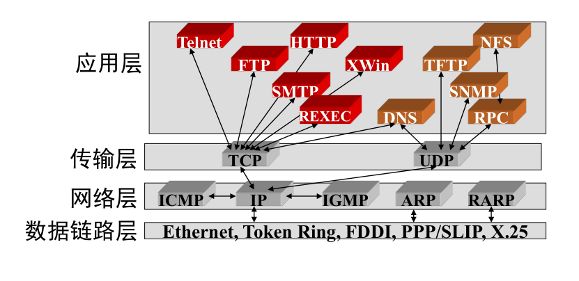 - 为什么需要参考模型/分层:各层工作独立,层之间通过接口联系,降低协议工作的复杂程度;灵活性好,任何一层的改变不影响其他层;每层的实现技术可以不同,减少实现复杂度;易于维护,每层单独调试;便于标准化