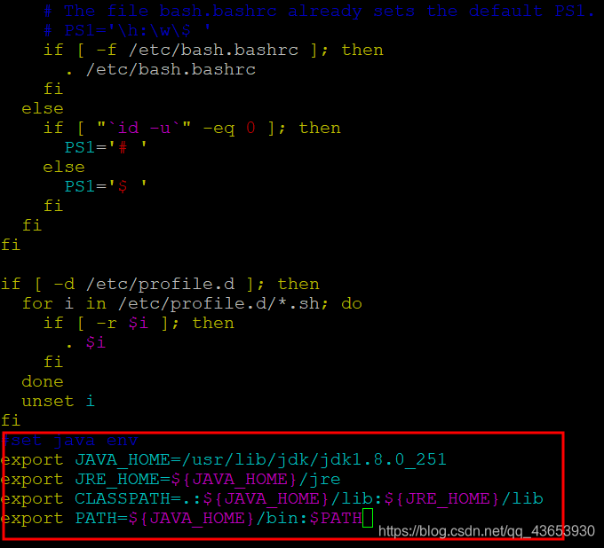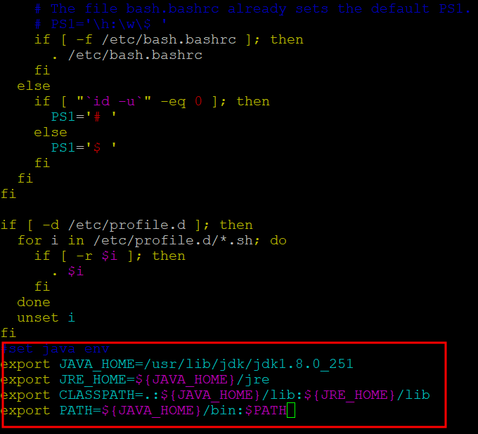 sudo vim /etc/profileexport JAVA_HOME=/usr/lib/jdk/jdk1.8.0_251 这里是要指定的文件位置