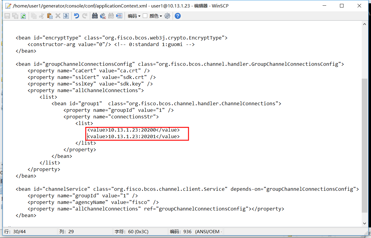 (1)修改机构A的 /generator/conf 文件夹下的 group_genesis.ini ,这里要结合个人主机的ip地址来看,注意端口要对上,与前面 node_deployment.ini 文件中p2p端口的对应。