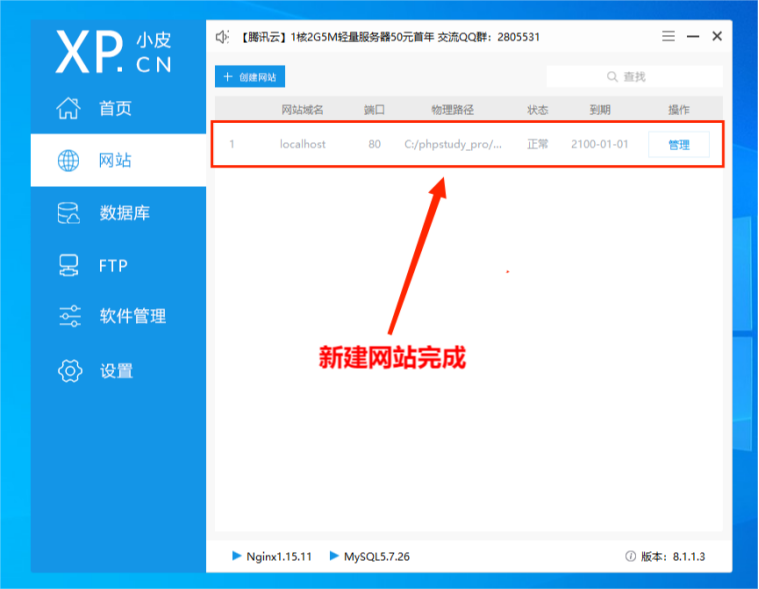 新建网站完成。