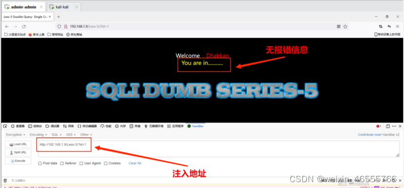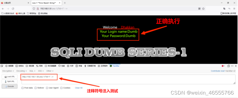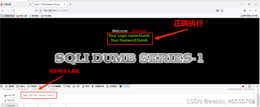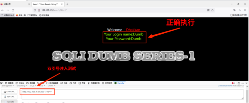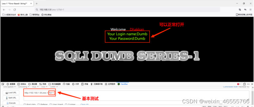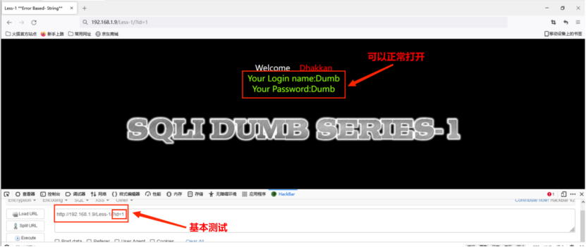 1. 测试http://192.168.1.9/Less-1/?id=1可以正常打开。