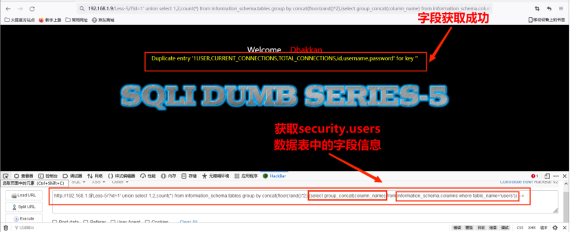 5. ⼿⼯通过union拼接sql语句实现读取数据库信息。