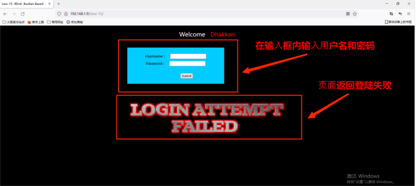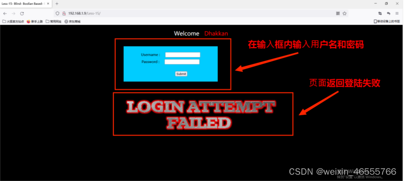 2. 在输⼊框内输⼊⽤户名和密码,⻚⾯返回登陆失败。
