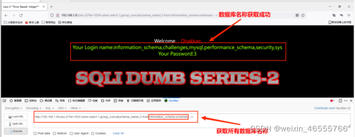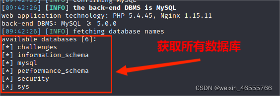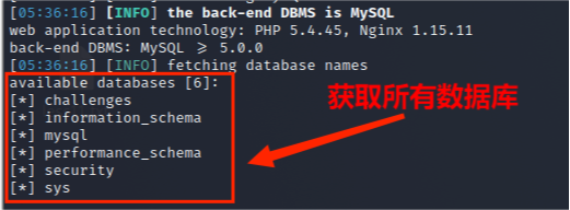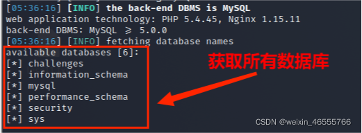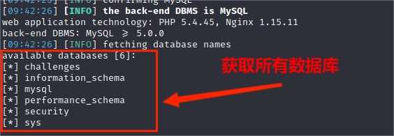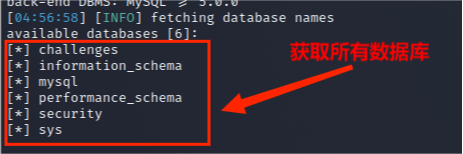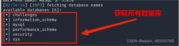 (3)从information_schema.schemata数据库中获取所有数据库名称,其命令为: