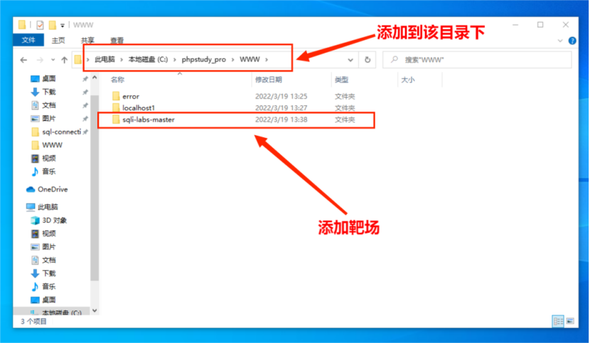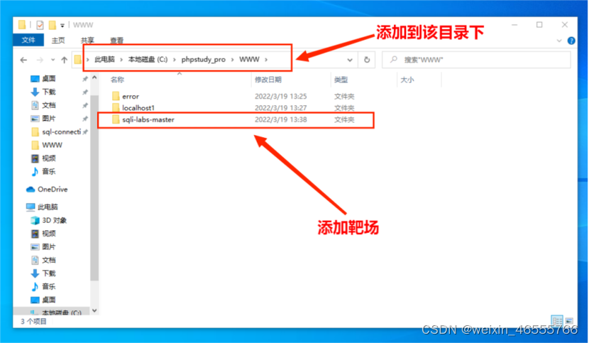 (1)下载phpstudy工具,将sqli-labs-master靶场添加到C:\phpstudy_pro\WWW目录下。
