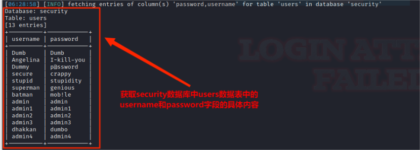 security.users数据表中的字段获取成功。