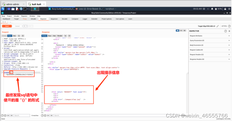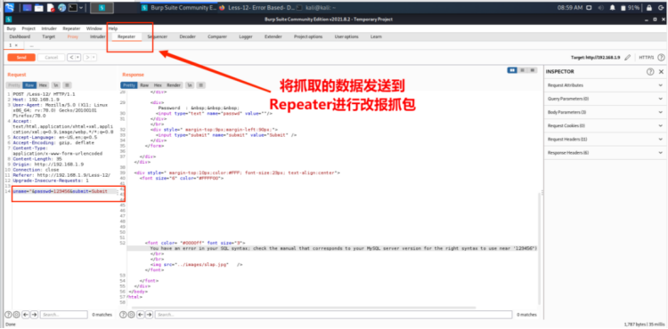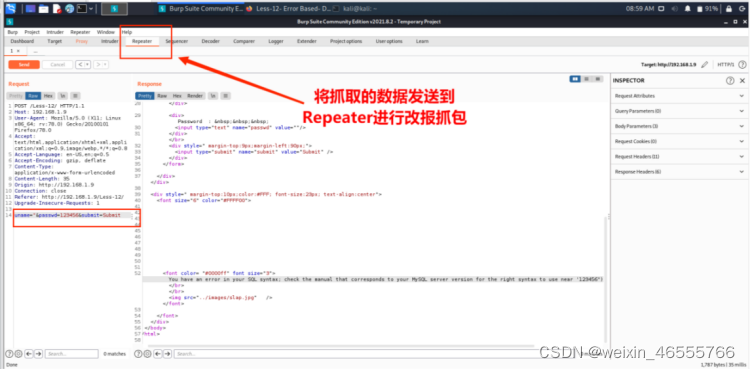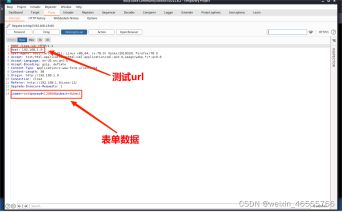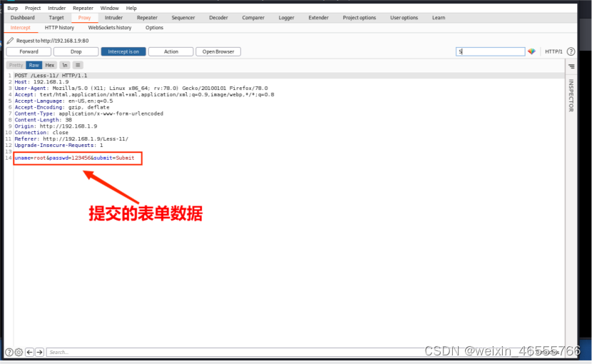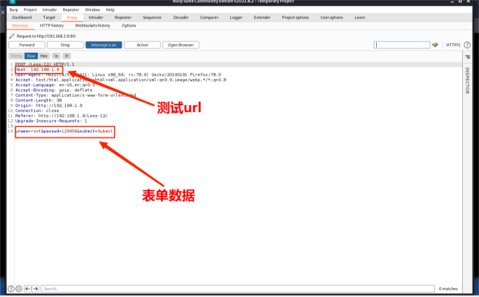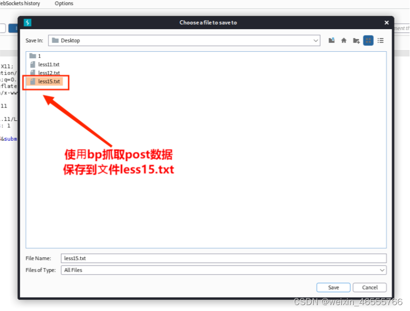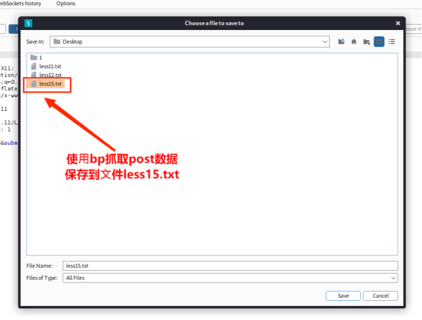 1. 使⽤BurpSuite工具抓取post数据,保存到⽂件less15.txt。