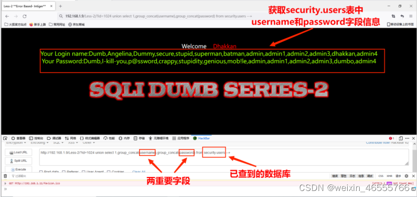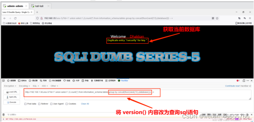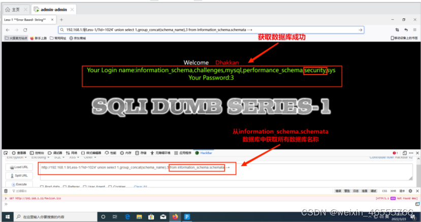获取数据库名security。