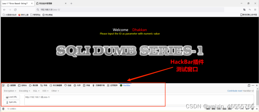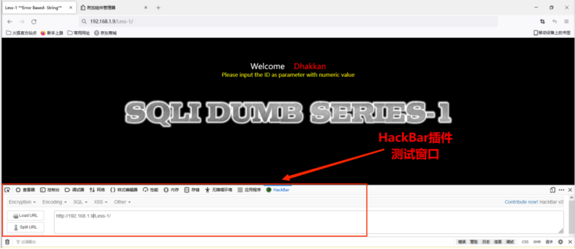 •利用phpstudy工具搭建靶场,并安装火狐浏览器和HackBar插件。