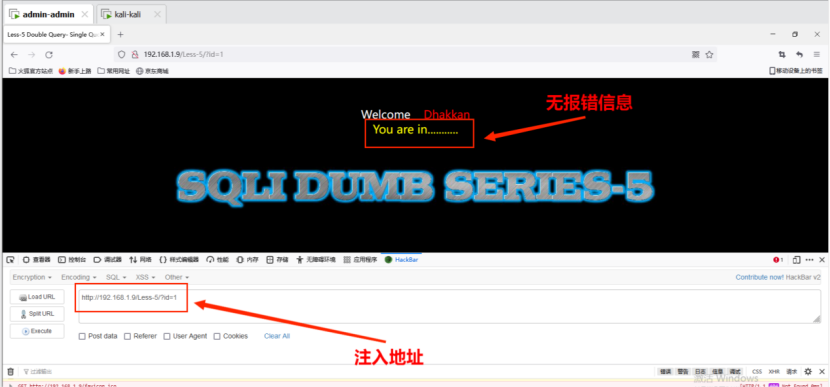 5. 测试sqli-labs中的less-1环境。