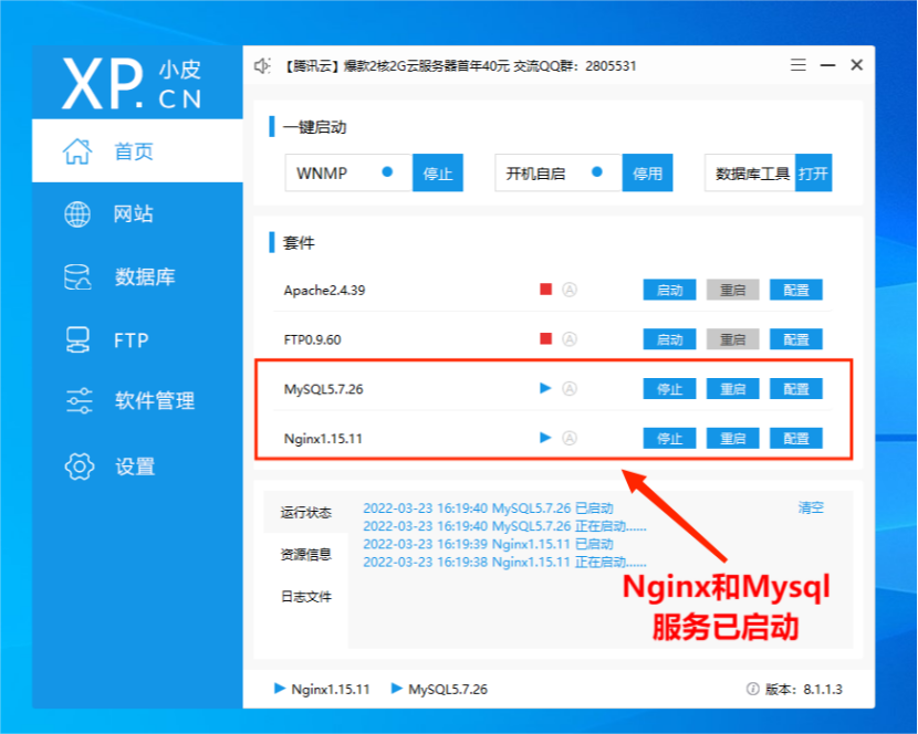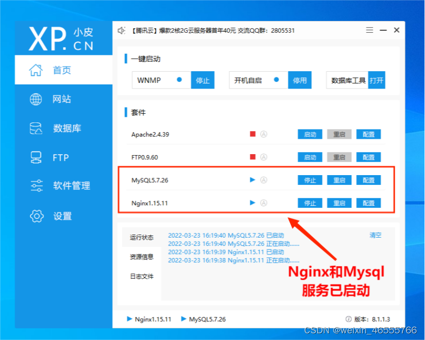 Nginx和Mysql服务已启动。