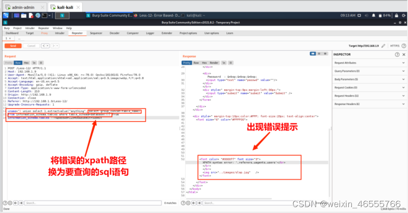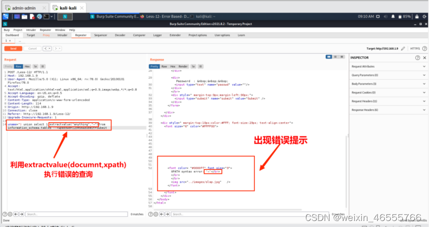 ·注⼊: http://192.168.1.9/Less-15