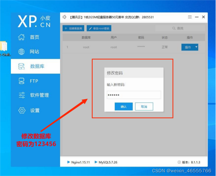 (3)修改数据库密码为123456并确认。