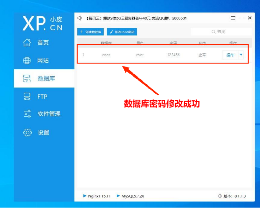 数据库密码修改成功。