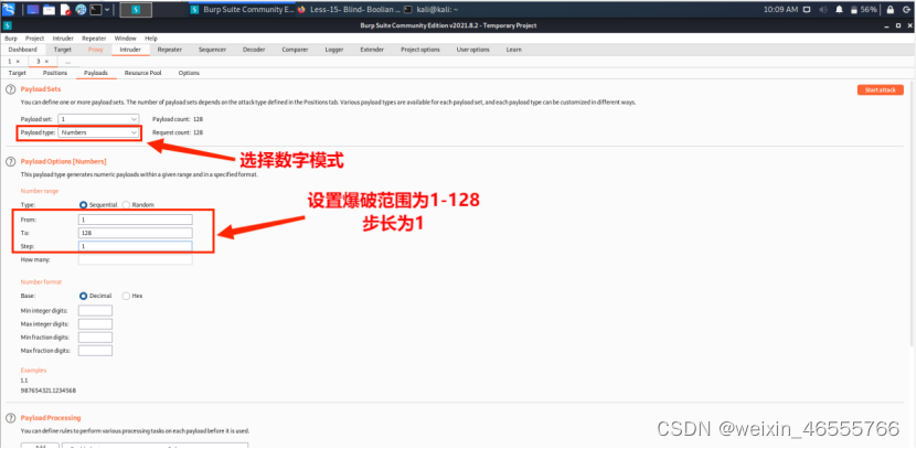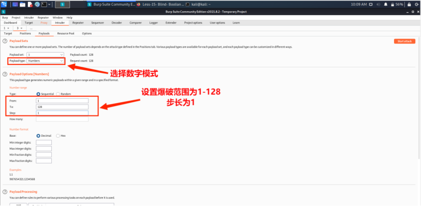 (2)设置爆破范围为1-128,步长为1。