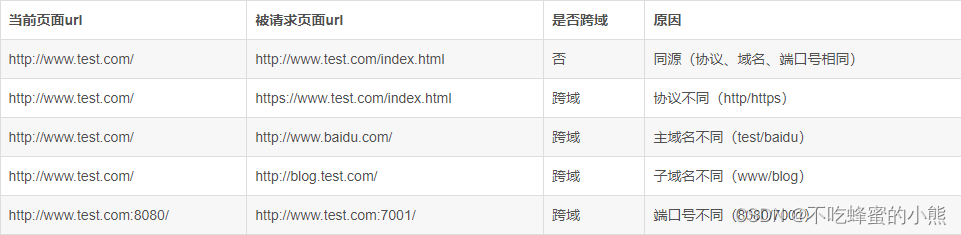 当一个请求url的协议、域名、端口三者之间任意一个与当前页面url不同即为跨域