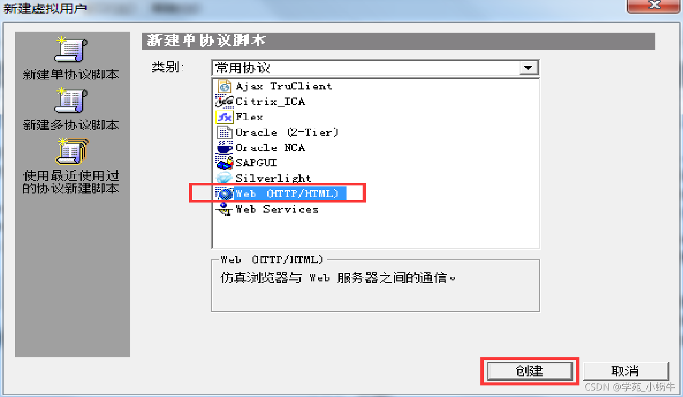2.选择所需要的协议,可以根据自己所测的系统进行选择,在这里我选择的是Web协议