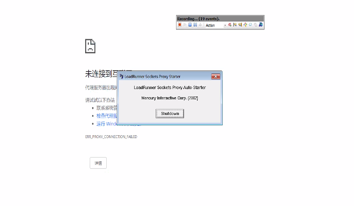 4.当电脑弹出lr窗口(loadrunner Sockets Proxy Starter , Recording[且events有数值在增加])证明录制设置成功