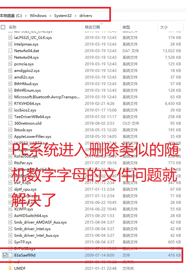 1、查看驱动路径:C:/windows/system32/drivers/内随机命名的软件83a5aef99d,可能是这个也可能你的电脑不是这个,不管修改日期是什么时候,我这里看到的是2009年,可能是别的年份,大小是476k,也可能是这个大小附近的数值。
