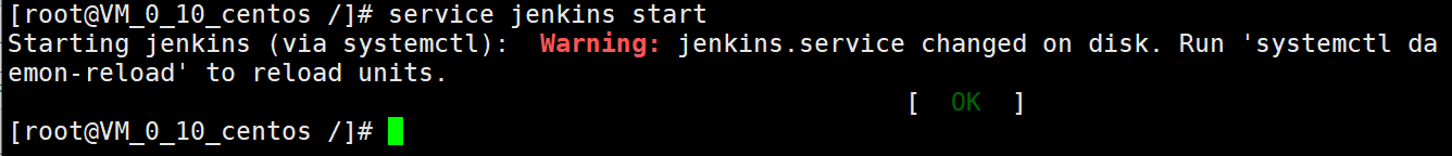 Starting jenkins (via systemctl): Warning: jenkins.service changed on disk. Run 'systemctl daemon-reload' to reload units.