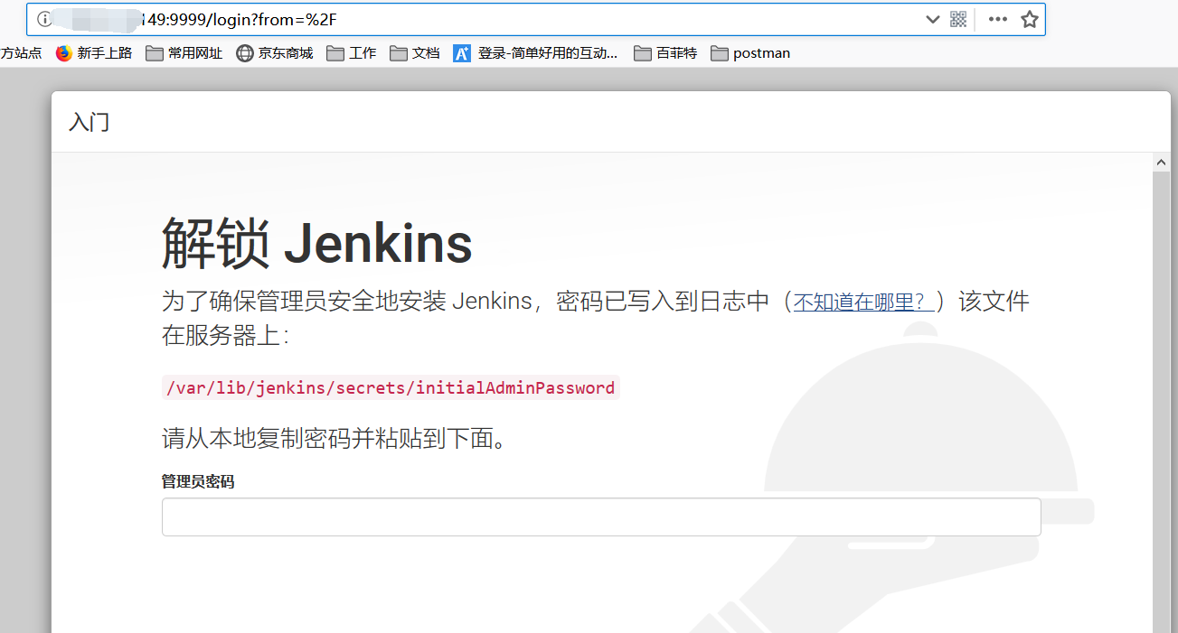 浏览器中输入: 服务器ip:Jenkins端口号,如图:
