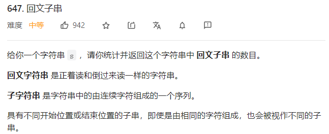 定义双指针遍历整个字符串,当s[i] == s[j]时,判断一下 i-j 是不是回文子串,是+1,不是+0穷举子字符串