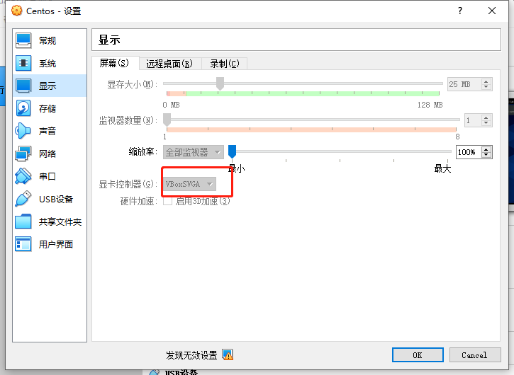 将显示设置中的显卡控制器调整为 VBoxSVGA,即可解决问题。