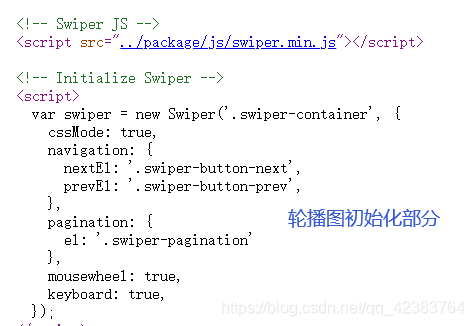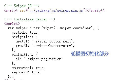 轮播图的初始化可以使用script标签包裹起来直接放到body后面,也可以把它复制到一个单独的js文件中,这里我是放到单独的js文件中。