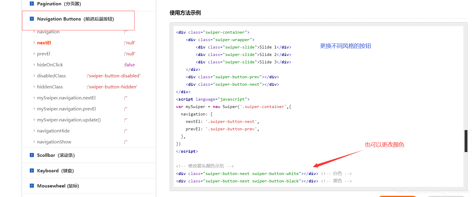 <script src="js/index.js"></script>对应样式的更改,可以查Swiper官网上面的API文档。我就只把按钮换成了白色的,圆点换成白色的。