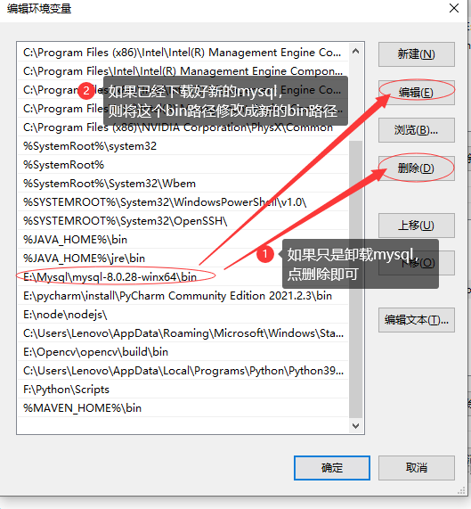 如果上述还没能解决,则需要在cmd中用命令把原有mysql删除