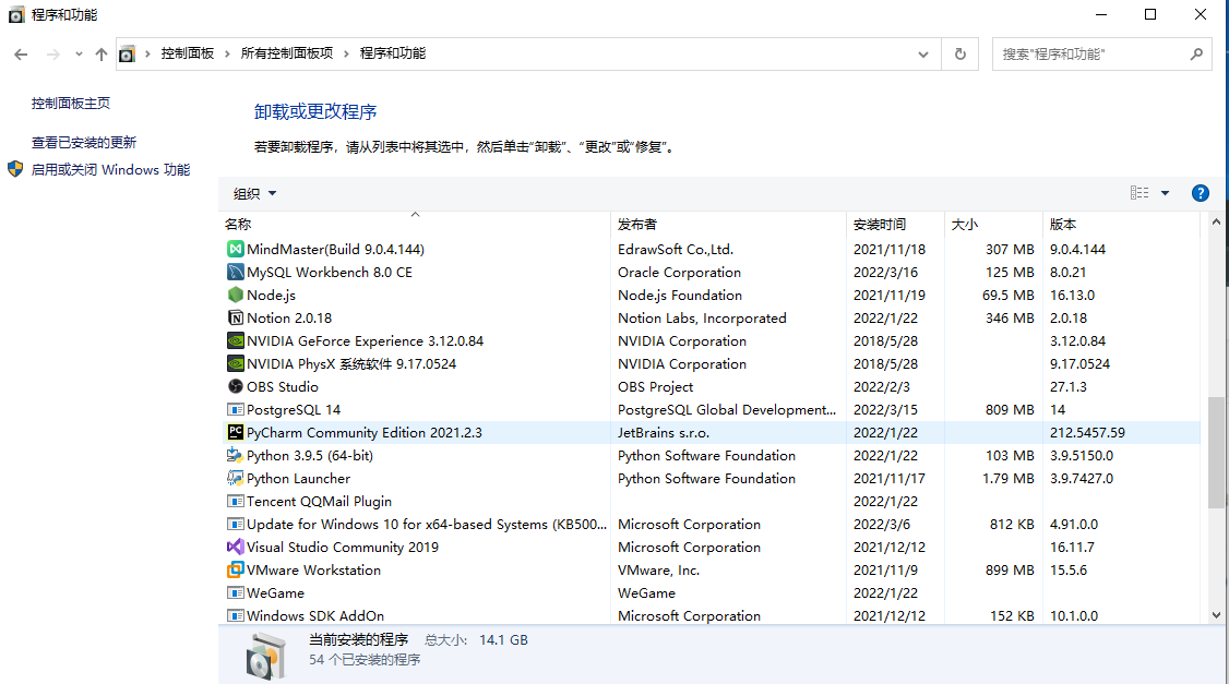 打开【控制面板】——【卸载程序】——找到你需要卸载的mysql程序,进行卸载
