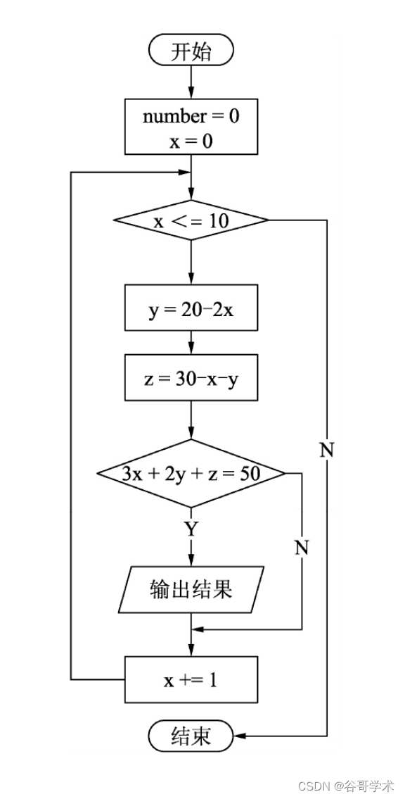 z = 30 -x - y # 方程①,当x、y一定时,可确定z值