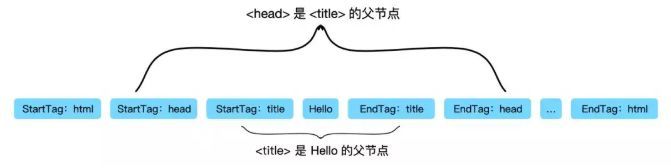 上图给出了节点之间的关系,例如:“Hello”Token位于“title”开始标签与“title”结束标签之间,表明“Hello”Token是“title”Token的子节点。同理“title”Token是“head”Token的子节点。