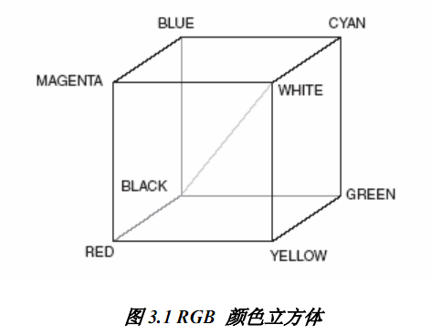 由于彩色显示器采用红、绿和蓝来生成目标颜色,所以RGB颜色空间是计算机图形学最通常的选择,这样可以简化系统的构架与设计。