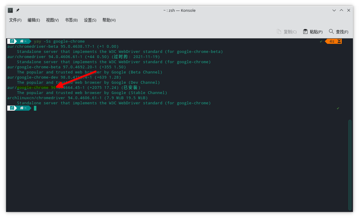 sudo pacman -S netease-cloud-music安装google-chrome 官方库没有(不知道为什么)这里用yay在aur里安装