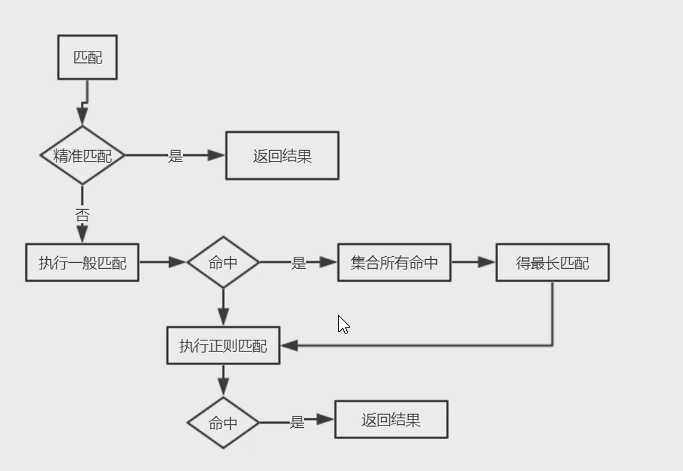 首先匹配 =,其次匹配^~,其次是按文件中顺序的正则匹配,最后是交给 /通用匹配。当有匹配成功时候,停止匹配,按当前匹配规则处理请求。